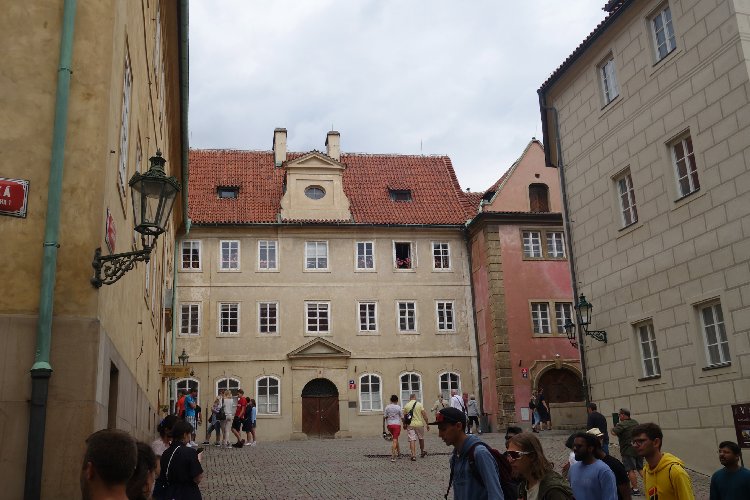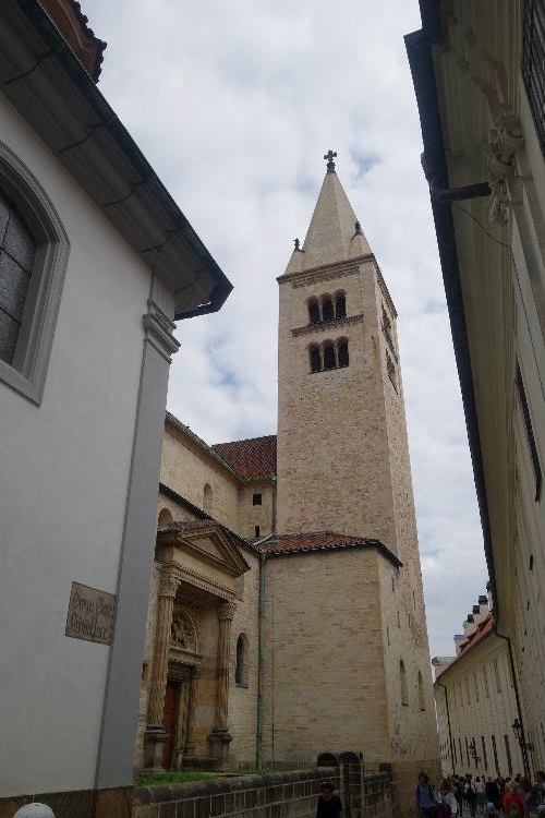 *성 이르지 바실리카의 하얀 첨탑과 뒷 모습, 그리고 주변 건물을 보면서 황금소로를 향해 갑니다.
